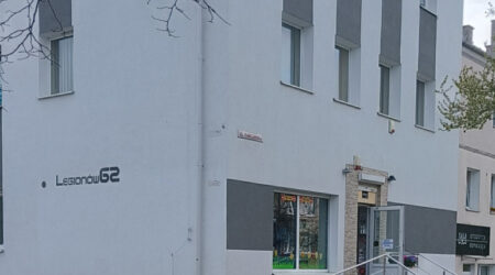 Lokal o powierzchni 81,35m2 mieści się przy ulicy Legionów na parterze w 3 piętrowym budynku.