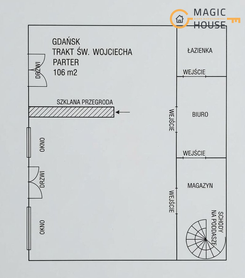 Na sprzedaż lokal użytkowy o łącznej powierzchni 136 m², położony przy ul. Trakt Świętego Wojciecha 20 – jednej z głównych i najbardziej rozpoznawalnych ulic Gdańska.