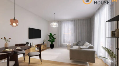 Nieruchomość składa się z salonu z aneksem kuchennym o powierzchni 28 m2, sypialni 12 m2, łazienki 4,5 m2 oraz korytarza 4m2. Ponadto z sypialni jest wyjście na balkon ok. 3,5 m2 (nie jest wliczony w powierzchnię mieszkania).
