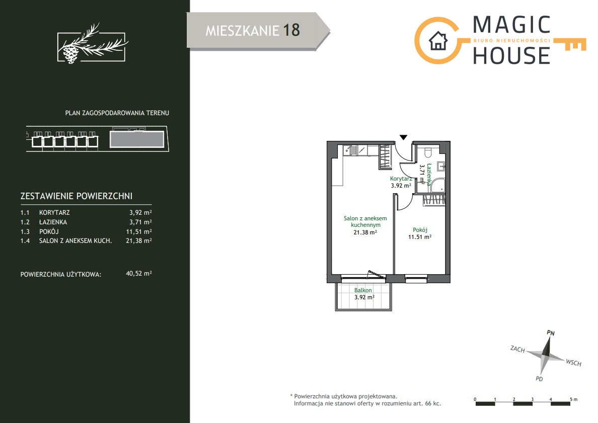 • Powierzchnia użytkowa 40.52 m2