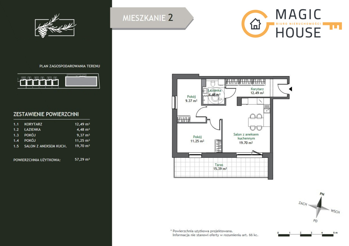 Prezentowana nieruchomość to mieszkanie 3 pokojowe w budynku wielorodzinnym na 1 piętrze o powierzchni 57.29m2 i z tarasem o powierzchni aż 15.29m2 na stronę południową.