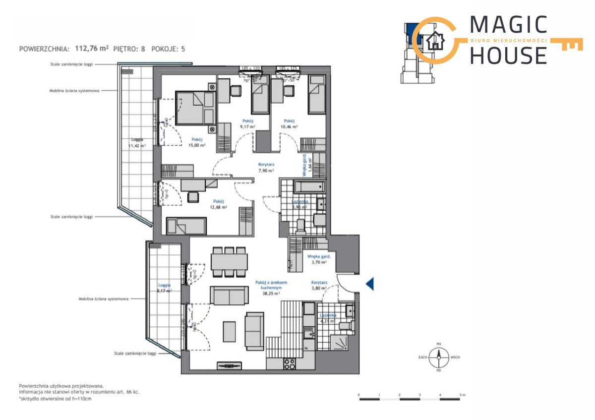 Prezentujemy ofertę sprzedaży przestronnego 5-pokojowego apartamentu o powierzchni 129,84 m², położonego na 9. piętrze nowoczesnego apartamentowca w Gdańsku Wrzeszczu.