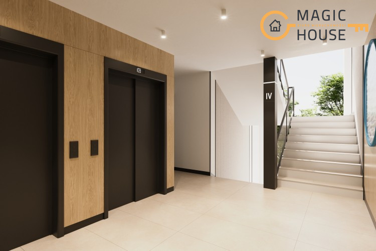 Przestronne wnętrza, duże balkony i prywatne zielone tarasy (od strony wschodniej), przeszklona klatka schodowa i podziemna hala garażowa, prywatne ogródki i strefa roślinności, sklepu i punkty usługowe, ławeczki na schodach sąsiedzkich i skąpane w zieleni wejście do budynku.