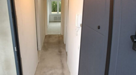 Wymienione zostały wszystkie instalacje (w tym elektrycznej – z aluminiowej na miedzianą), wylewki betonowe zostały przygotowane pod wykończenie (panele/płytki) oraz wymianę drzwi wejściowych.