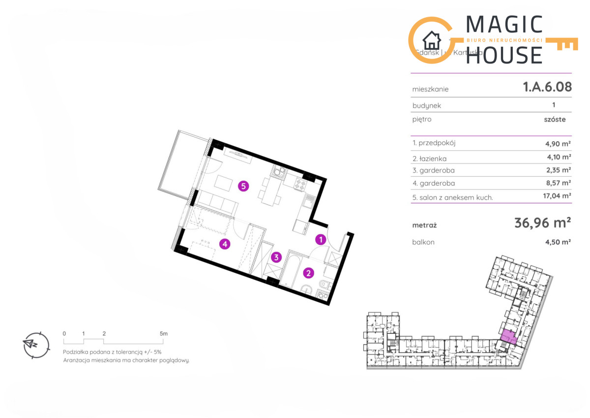 Na sprzedaż jasne i funkcjonalne mieszkanie o powierzchni 36.96 m², położone na 6 piętrze nowoczesnego budynku na osiedlu w dzielnicy Siedlce.