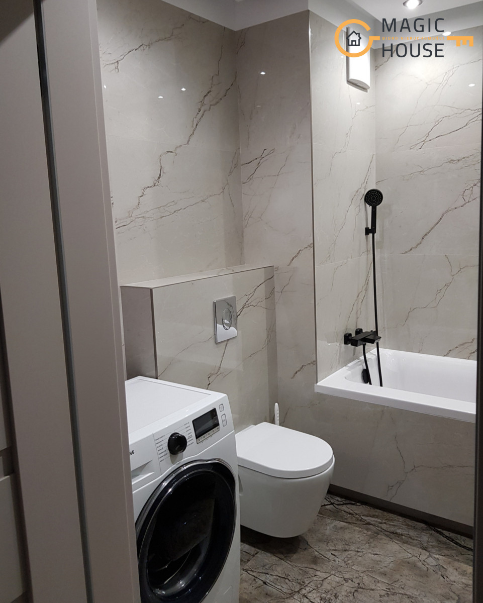 Mieszkanie wykończone w wysokim standardzie, z dbałością o detale. Gotowe do zamieszkania od zaraz – częściowo umeblowane i wyposażone w sprzęty AGD: telewizor, klimatyzacja, lodówka, kuchenka, piekarnik, zmywarka, mikrofalówka.
