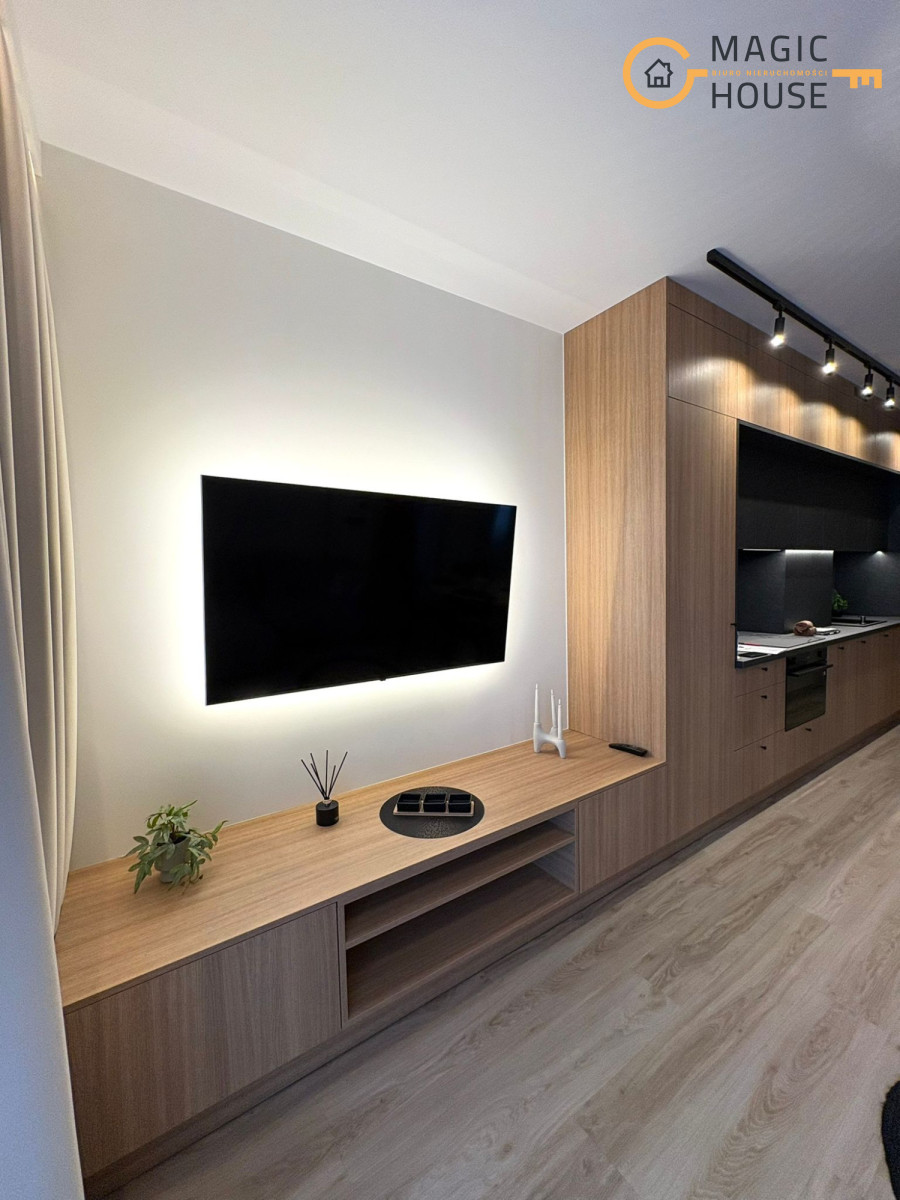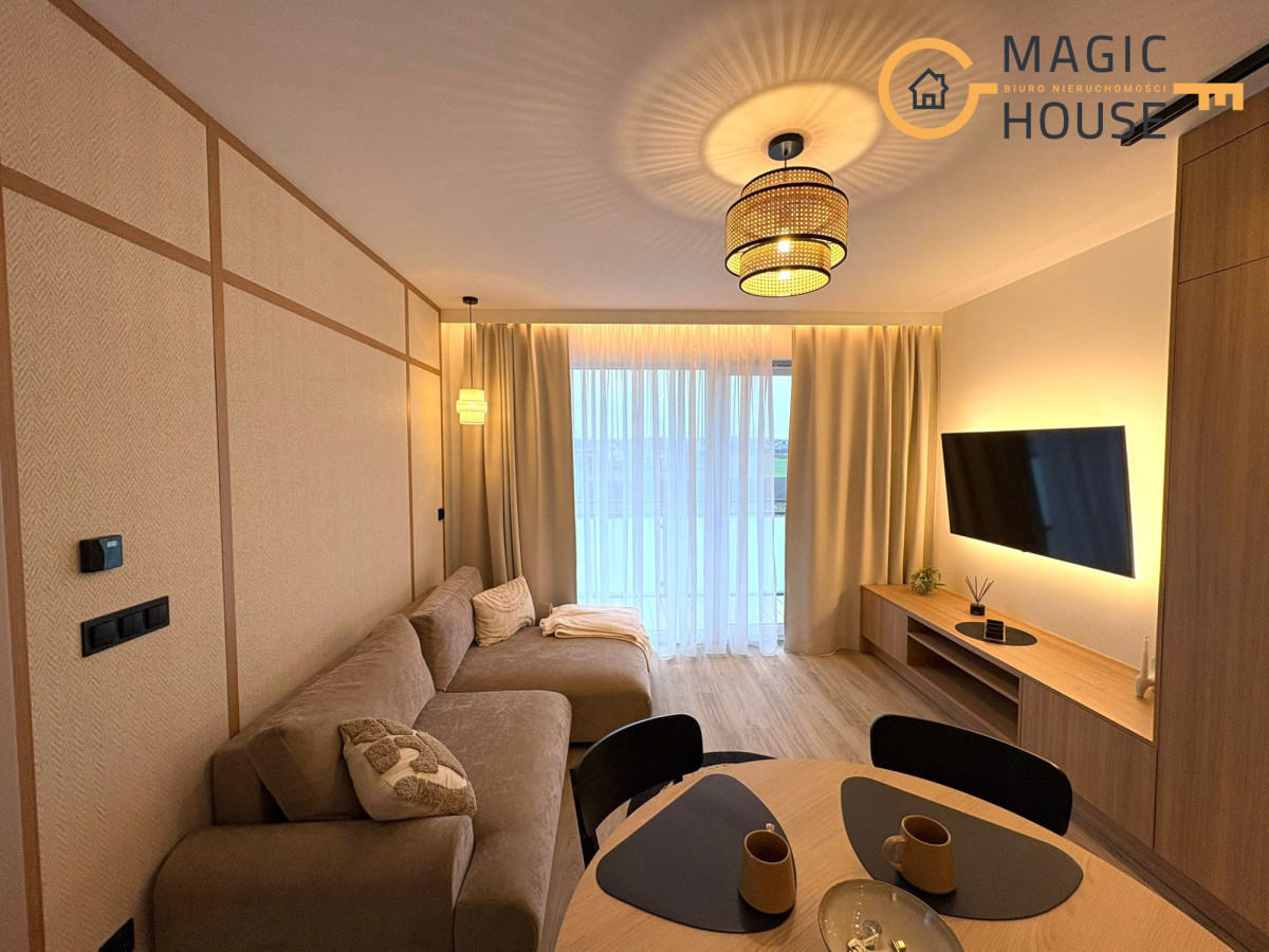 Jasny salon z wyjściem na duży balkon stanowi idealną przestrzeń do wypoczynku. Kuchnia została wykonana na wymiar i wyposażona w nowy, nieużywany sprzęt AGD. Łazienka z prysznicem oraz praktyczną zabudową oferuje wysoki komfort użytkowania.