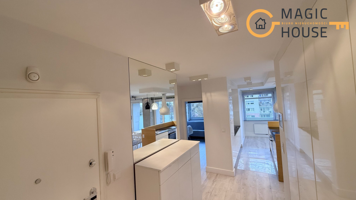 Mieszkanie zostało zakupione i urządzone przez dewelopera – wykończone w spójnym stylu, wyposażone w meble w zabudowie oraz pełne AGD.