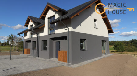 Na sprzedaż nowoczesny dom w zabudowie bliźniaczej, położony w spokojnej i zielonej okolicy w Jeleńskiej Hucie (woj. pomorskie). Kameralna inwestycja – tylko jeden budynek, idealny dla rodzin i osób szukających ciszy, przestrzeni i dobrej komunikacji z Trójmiastem.