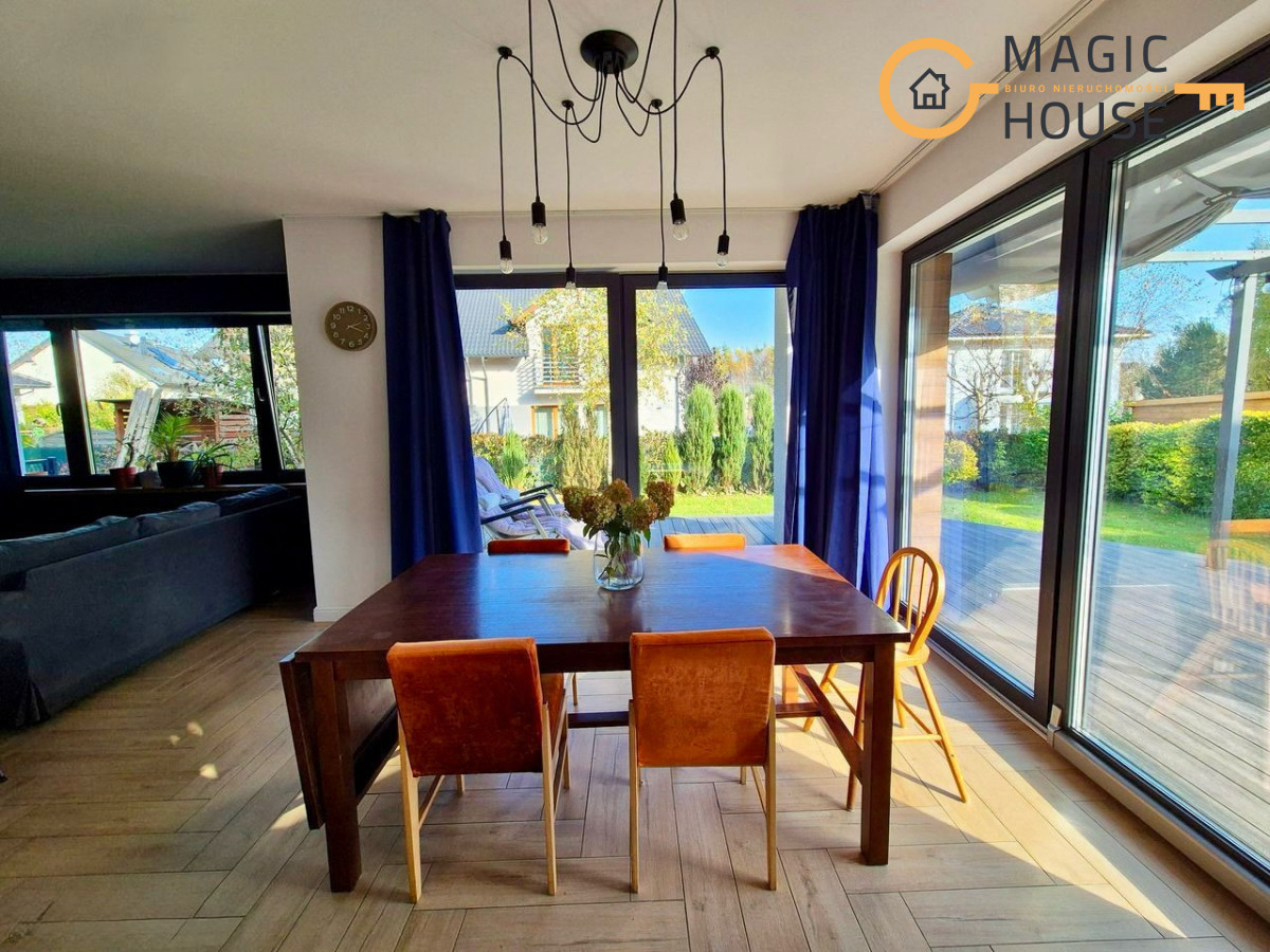 Na sprzedaż komfortowy dom wolnostojący o powierzchni użytkowej 155 m² + ok. 20 m² wysokiego strychu, usytuowany na zadbanej działce o powierzchni 800 m², z bezpośrednim dostępem do drogi asfaltowej. Nieruchomość położona jest w spokojnej, zielonej części Banina i została wybudowana z dbałością o jakość oraz nowoczesne rozwiązania technologiczne.