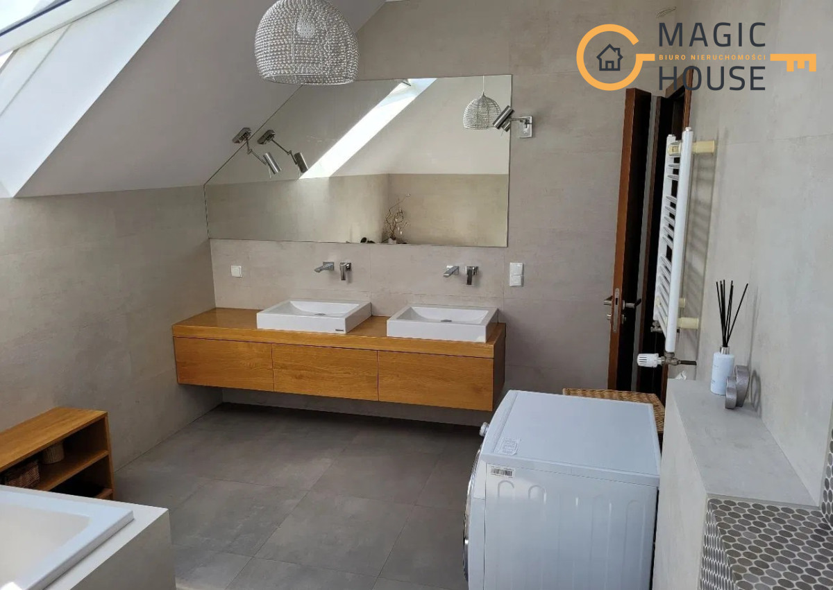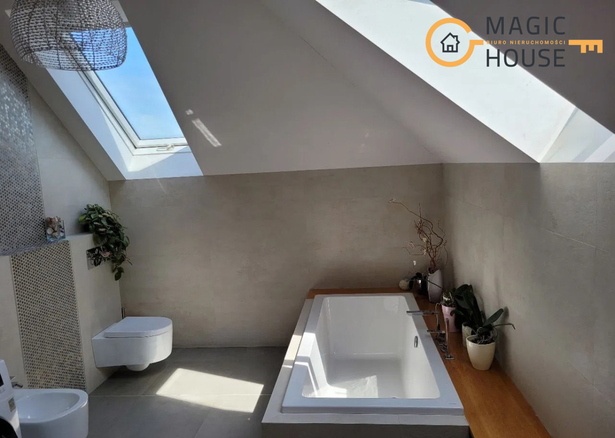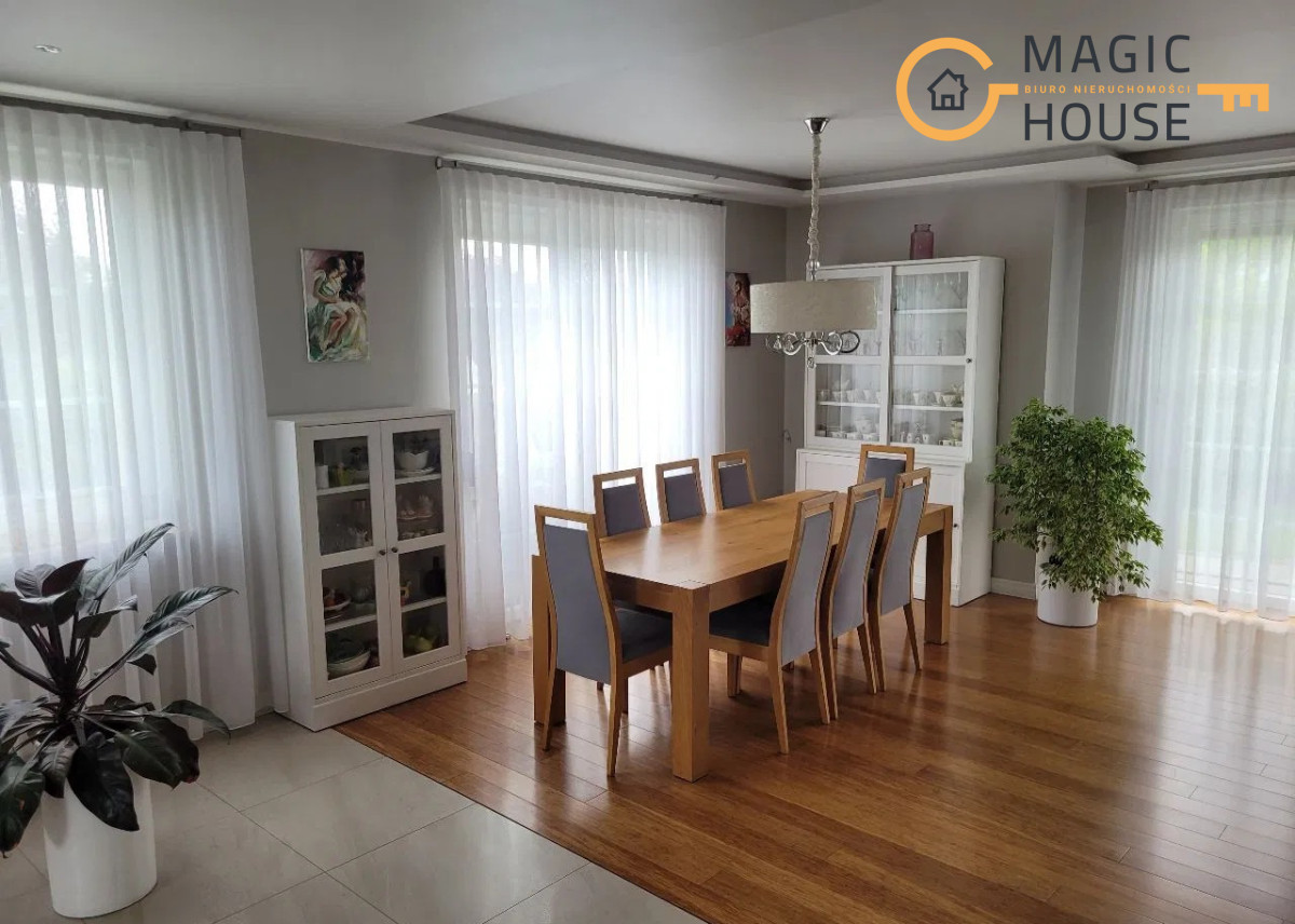 Dom o powierzchni użytkowej wynoszącej 177 m2 położony jest na działce o powierzchni 462 m2, zbudowany został z wysokiej klasy materiałów (porotherm, dachówka ceramiczna). Zarówno w środku, jak i na zewnątrz wykończony został z dbałością o detale.