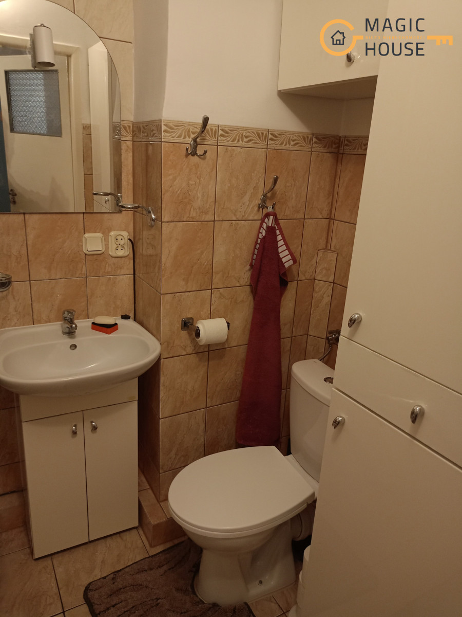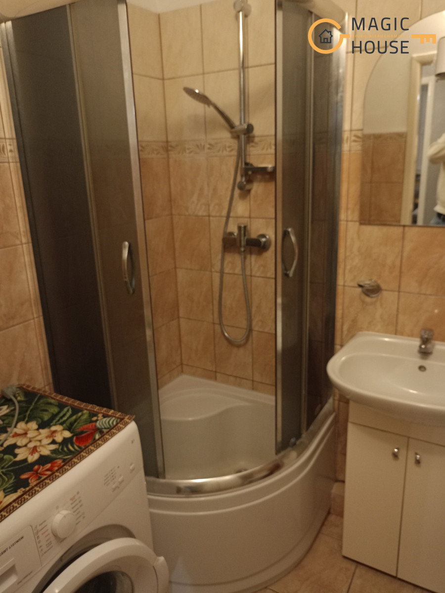 Łazienka i kuchnia wspólna z drugim lokatorem.