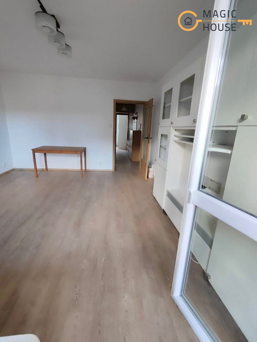 Mieszkanie obecnie składa się z dwóch pokoi, z realną możliwością wydzielenia trzeciego pokoju poprzez otwarcie lub reorganizację przestrzeni kuchni i salonu.