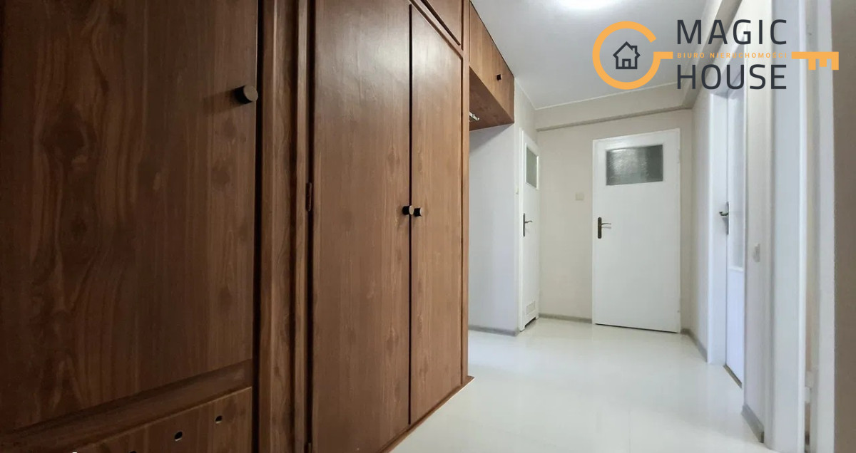 W przedpokoju duża szafa zapewniająca dodatkowe miejsce do przechowywania,