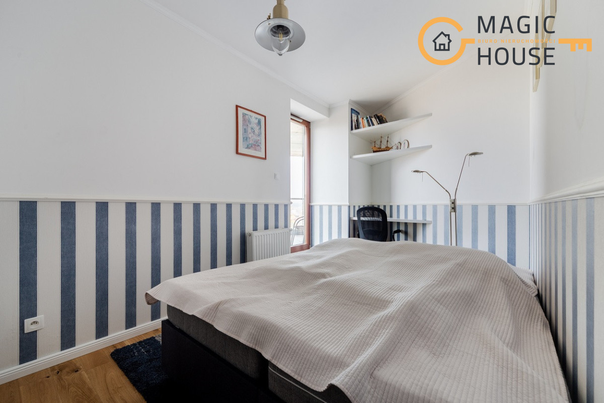– dwóch sypialni z łóżkami o szerokości 180 cm i 160 cm, z mniejszej sypialni jest wyjście na taras,