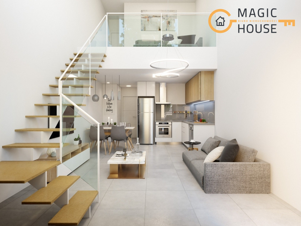 Antresola – dodatkowa przestrzeń, którą można zaadaptować na gabinet, strefę relaksu lub dodatkową sypialnię.