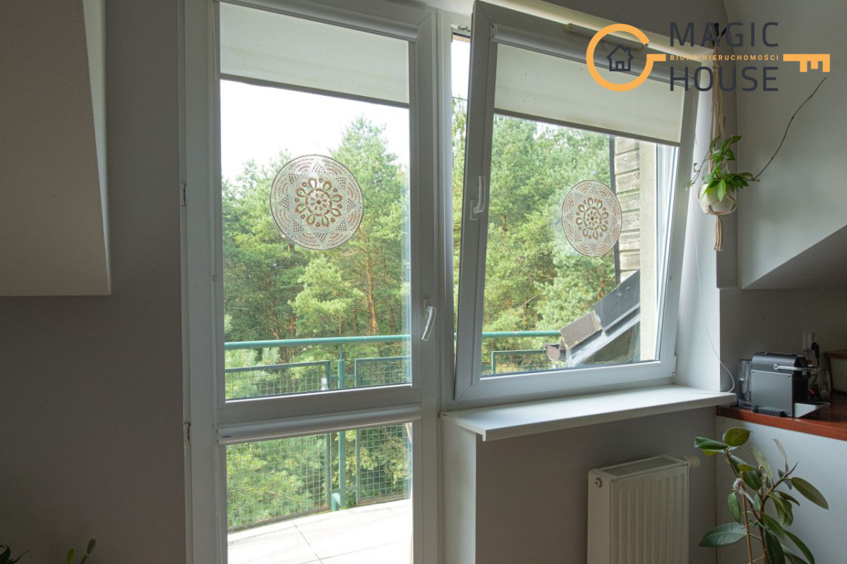 • duży balkon z widokiem na las — idealne miejsce na poranną kawę lub wieczorny relaks.