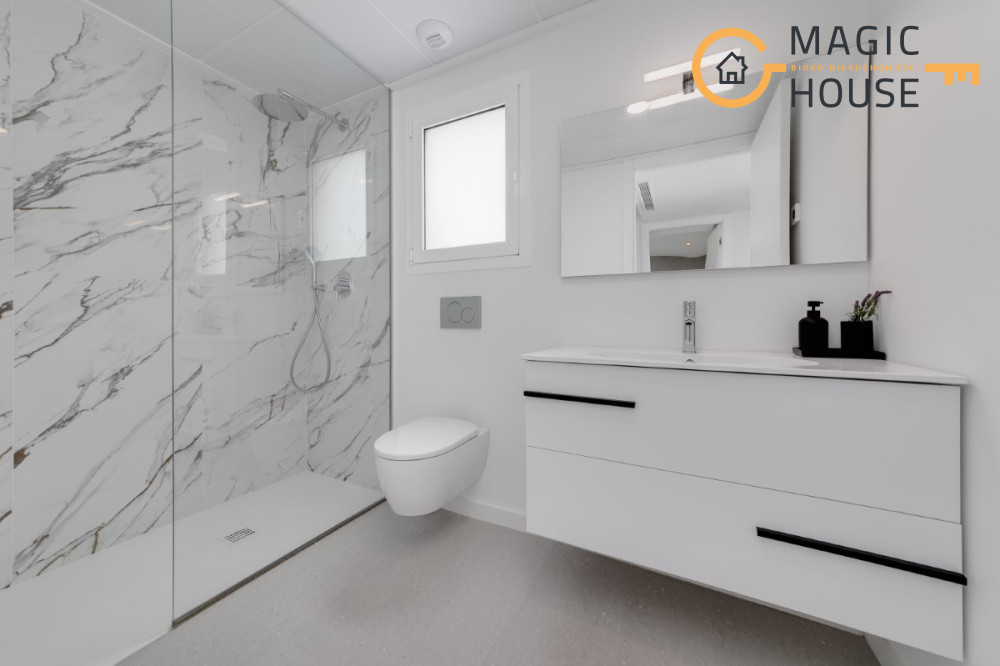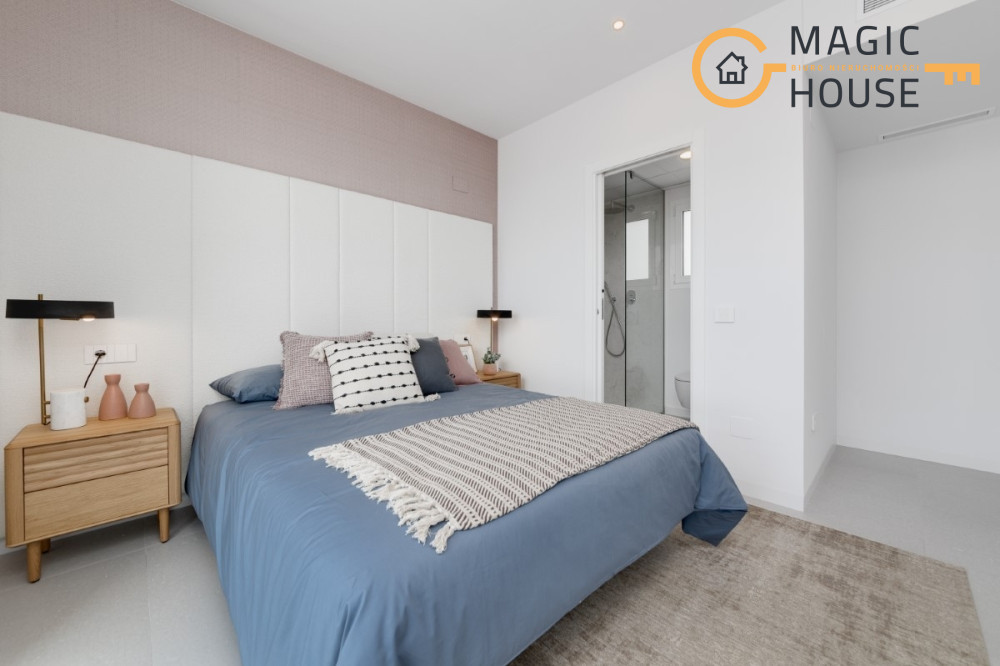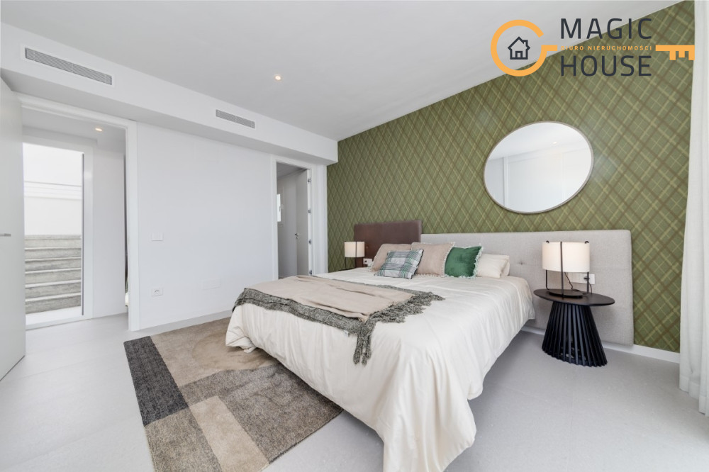 Na posesji znajdują się również: ogród, patio, miejsce parkingowe i prywatny basen. W cenie nieruchomości są w całkowicie wykończone i wyposażone w biały montaż łazienki i kuchnie z meblami i AGD.