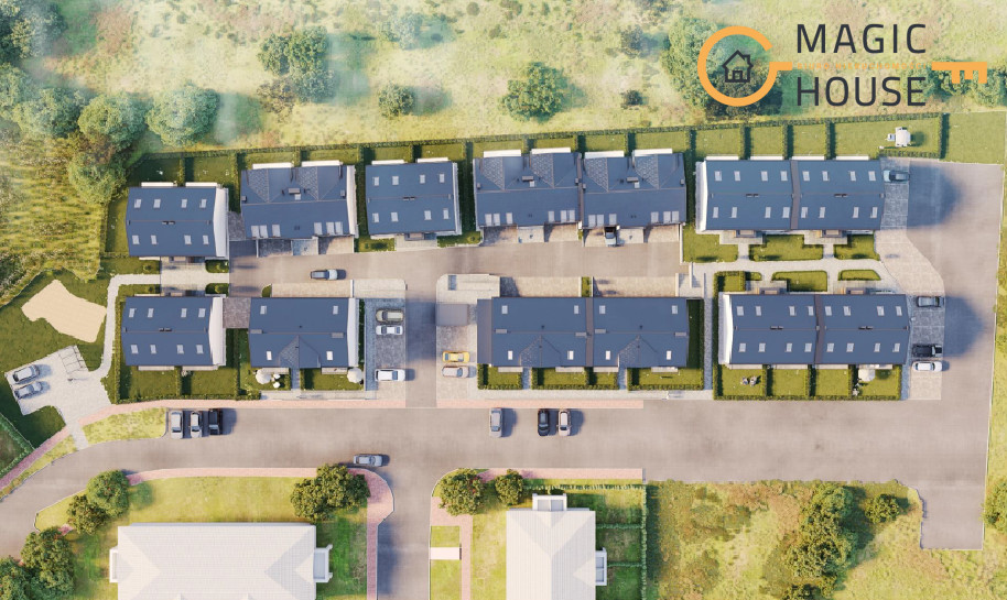 – Kameralne osiedle 13 budynków 4-lokalowych o eleganckiej, niskiej zabudowie (2 kondygnacje).