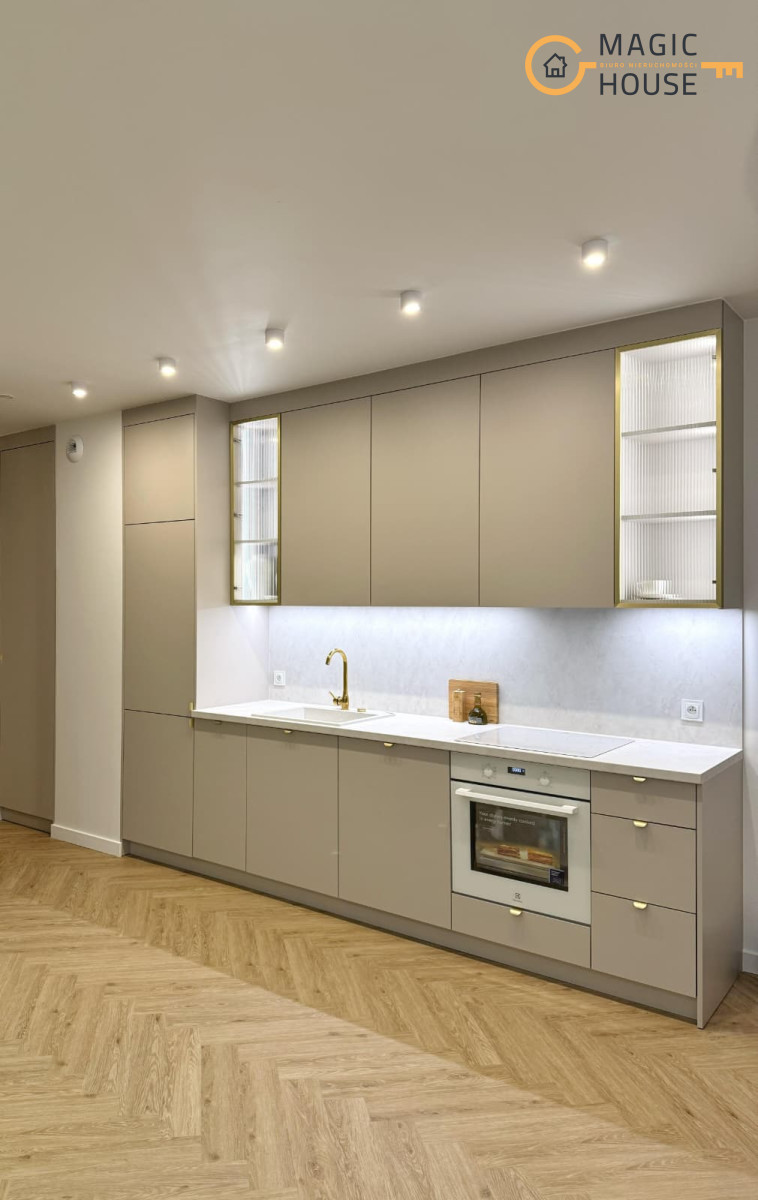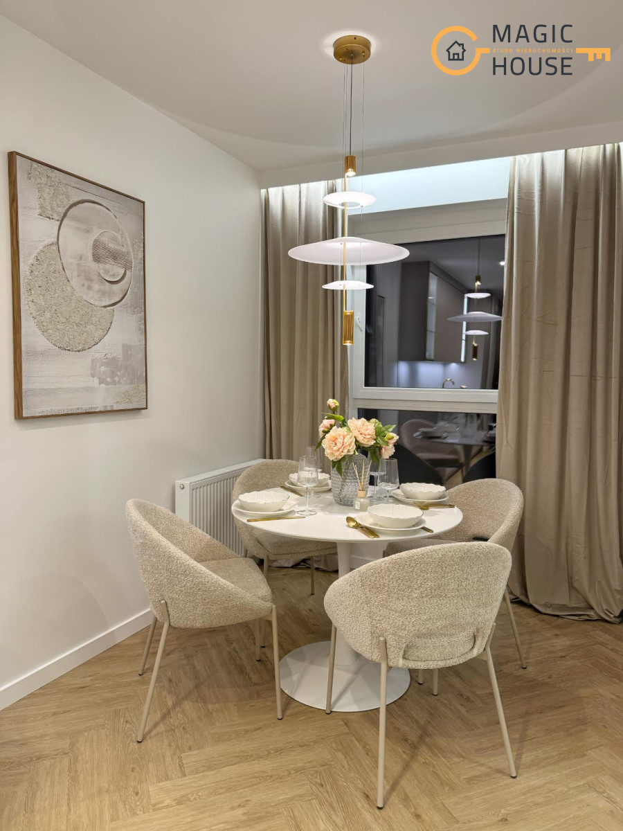Wykończenie zostało zrealizowane z materiałów wysokiej jakości, w nowoczesnym i neutralnym stylu – gotowe do zamieszkania bez dodatkowych kosztów.